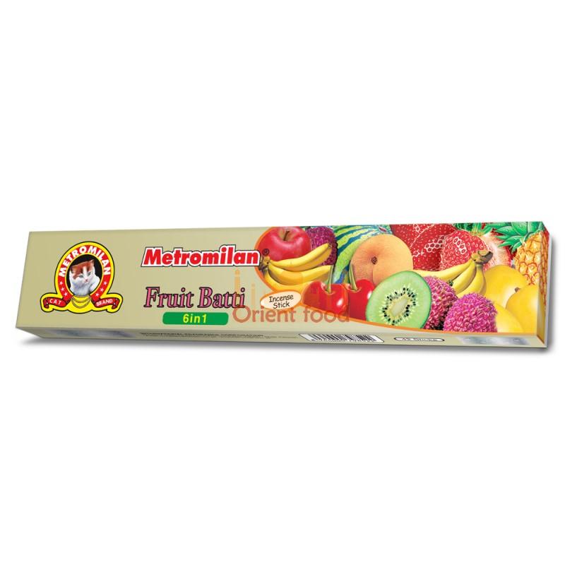 Metromilan Fruit Batti vám přináší sadu každého oblíbeného ovoce z celého světa – třešně, manga, melounu, broskve, ananasu a jahody. Jednotlivé vonné tyčinky jemně rozptýlí zvláštní aroma konkrétního ovoce, které ideálně doplní jídelní prostory, jídelny, gurmány a restaurace.